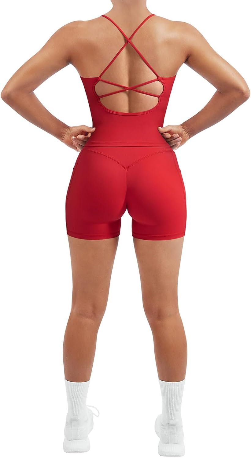 SUUKSESS Women 2 Piece Workout Sets Padded Tank Tops Tummy C...